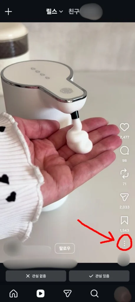 먼저 인스타에서 제품 관련 영상을 하나 찾습니다.
